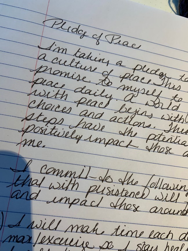 So instead I’ll write today. It’s not too late. Yesterday’s Project Peace post was about pledging peace. I wrote what I want to do: